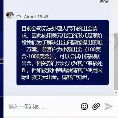 两个月已经大通的客服经理都不回信息了,我们资金都出来了,提款两个月了都没有汇款,现在大通官网客服都是压根不解决事情,统一的回复。大陆所有客户都出不了金,涉嫌上亿金额,难道没人管了吗!!!!